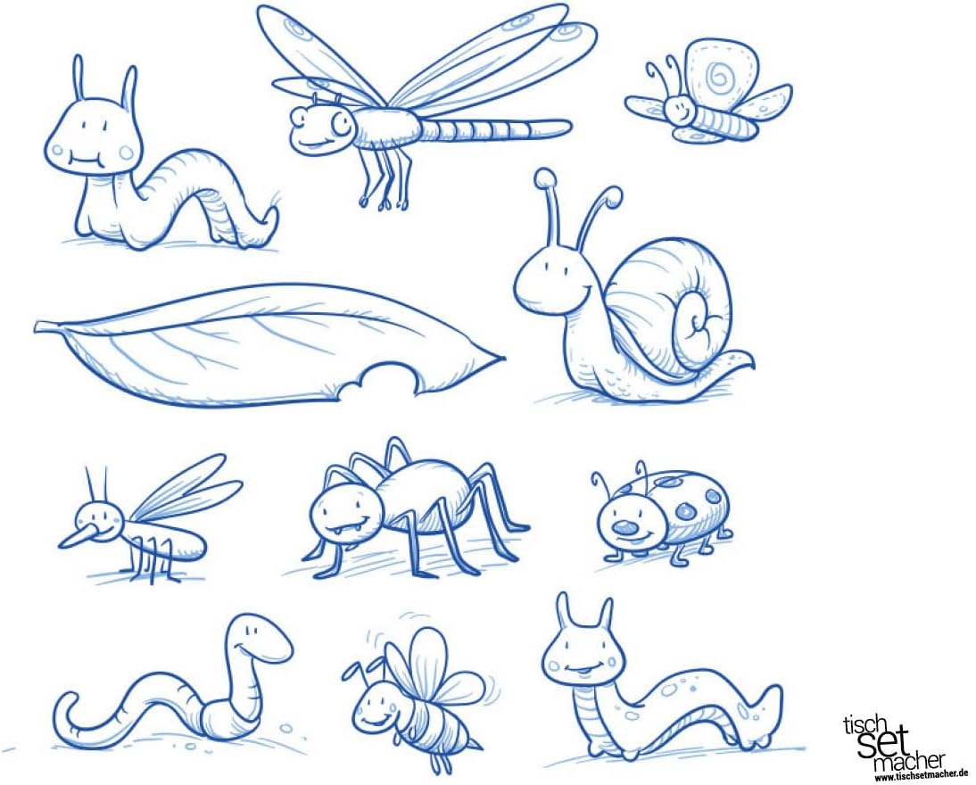 Tischsets I Platzsets Ausmalbilder Fur Kinder Lustige Insekten 12 Stuck In Hochwertiger Aufbewahrungsmappe Amazon De Kuche Haushalt