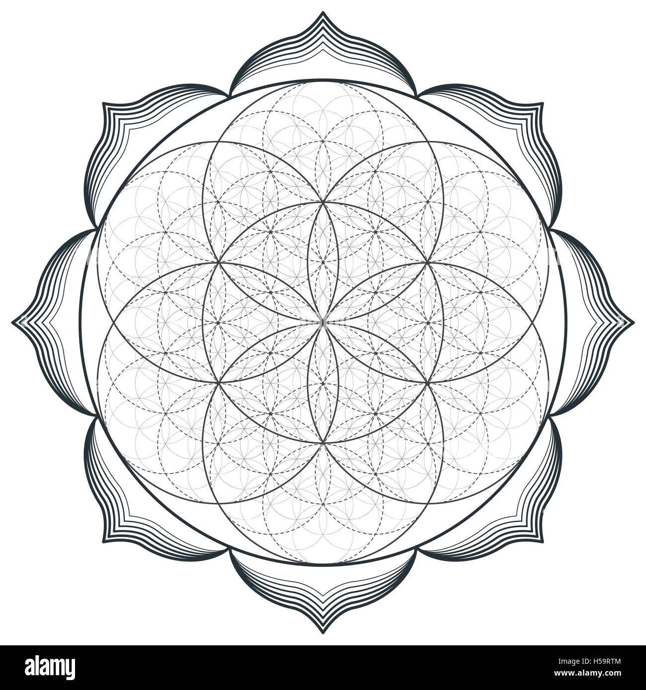 Vektor Kontur Monochrome Gestaltung Mandala Heilige Geometrie Abbildung Samen Blume Des Lebens Lotus Weissen Hintergrund Isoliert Stock Vektorgrafik Alamy
