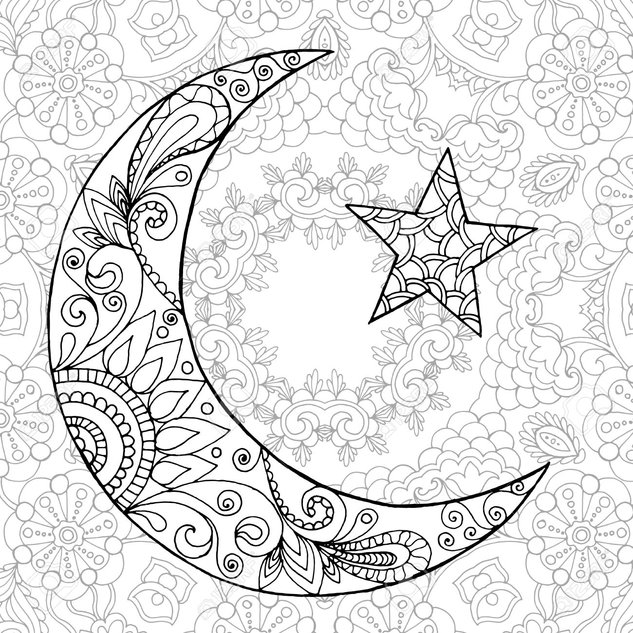 Malvorlage Der Turkischen Frau Islamische Filigrane Dekor Arabische Moschee Halbmond Und Sterne Auf Dem Hintergrund Freihand Skizze Zeichnung Fur
