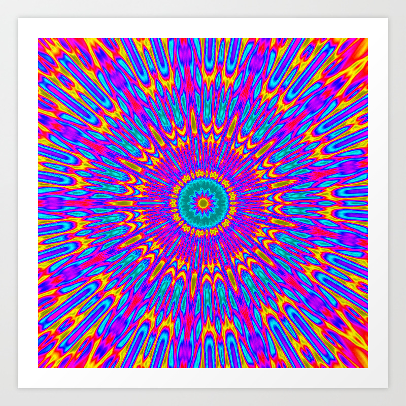 Happy Colors Explosion Psychedelic Mandala Art Print