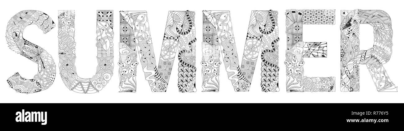 Wort Sommer Zum Ausmalen Dekorative Zentangle Vektorobjekt