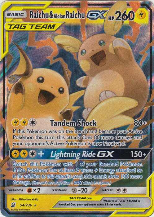 Pokemon Card Raichu Amp Alolan Raichu Gx Ultra Rare 220 236