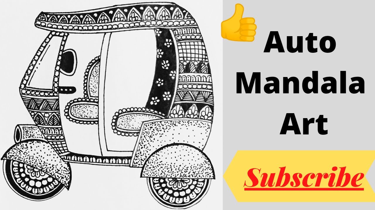 How To Draw Auto Rickshaw With Mandala Step By Step