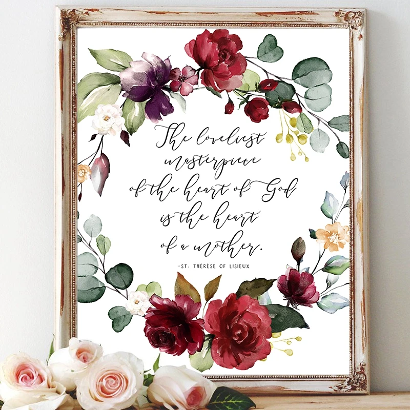 Mutter Tag Geschenk St Therese Von Lisieux Mutter Zitieren Druck Aquarell Blumen Kunst Leinwand Malerei Wand Bilder Wohnkultur