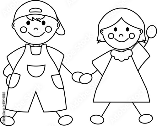 Poster Malvorlage Von Einem Jungen Und Madchen Zu Fuss In Den
