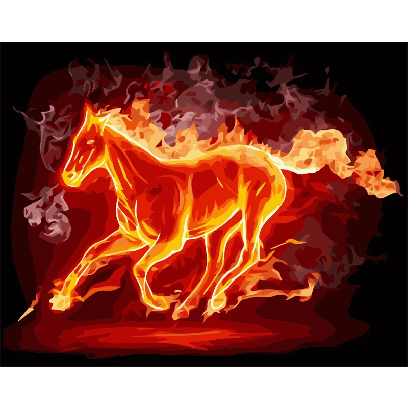 Das Feuer Pferd Diy Digitale Olgemalde Durch Zahlen Farbe Zeichnung Farbung Durch Zahlen Leinwand Handgemaltes Bild
