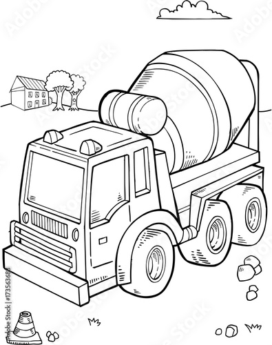 Vektor Clipart Betonmischer Skizze Ausmalbilder