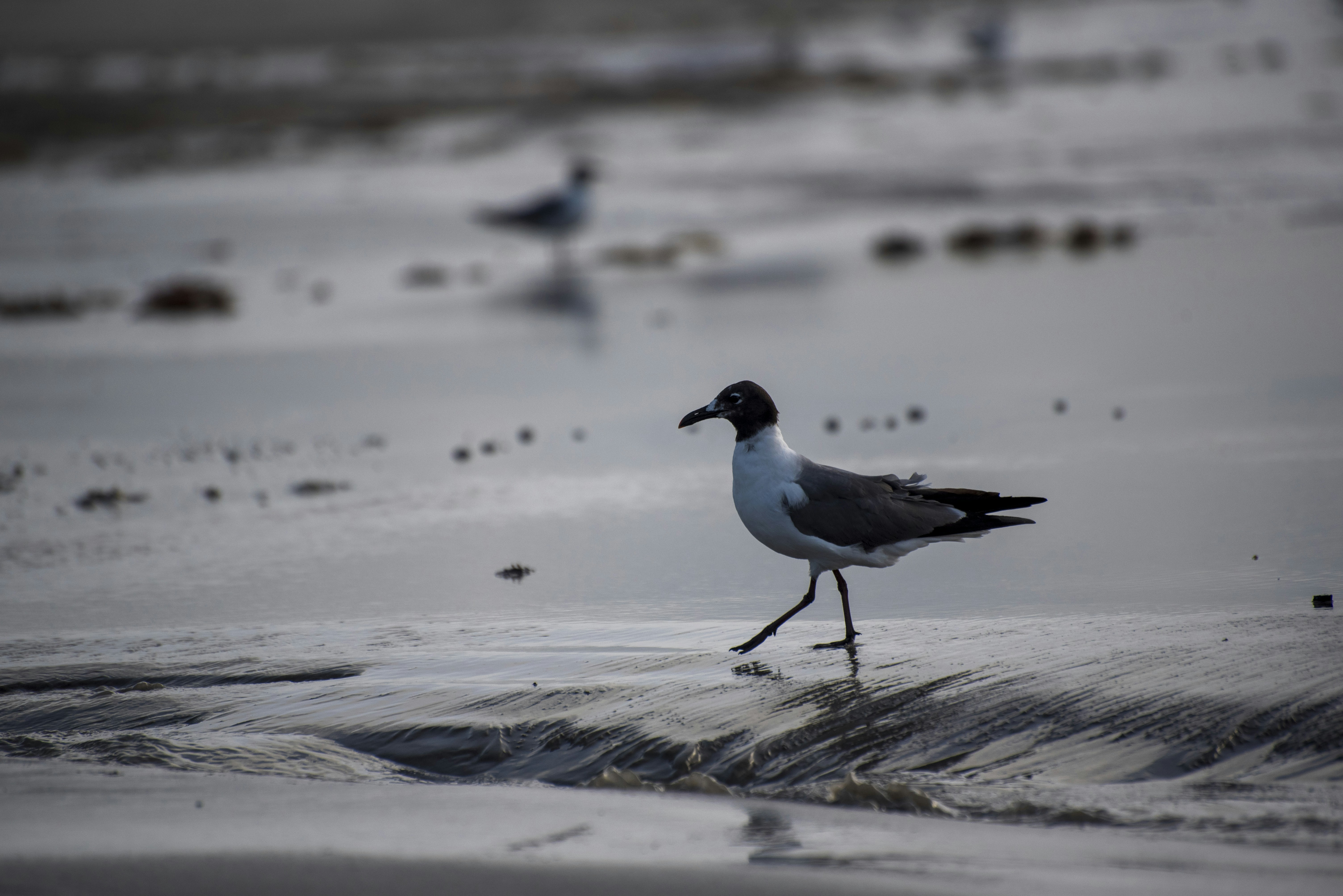 black and white bird on water during daytime