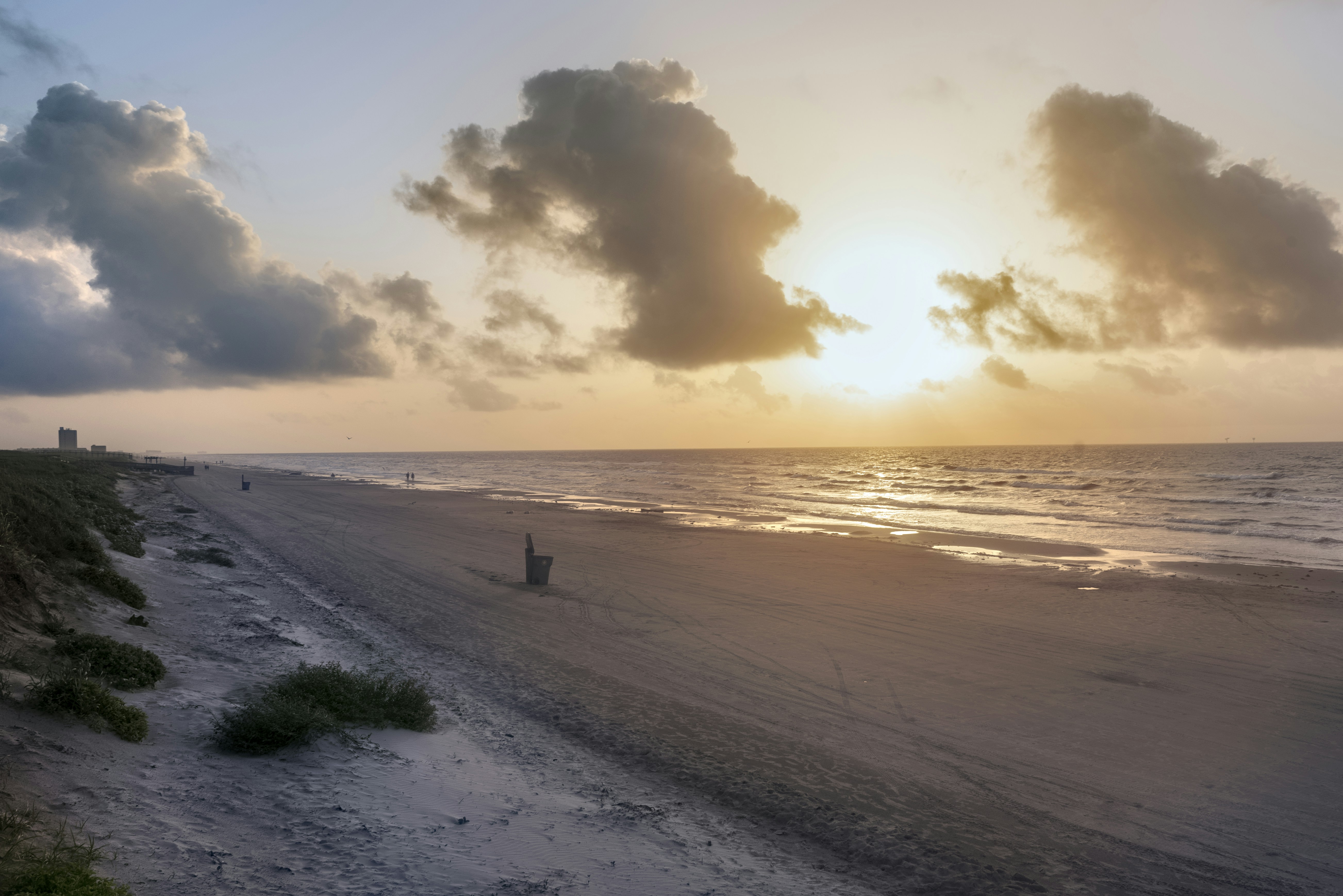 people on beach during sunset