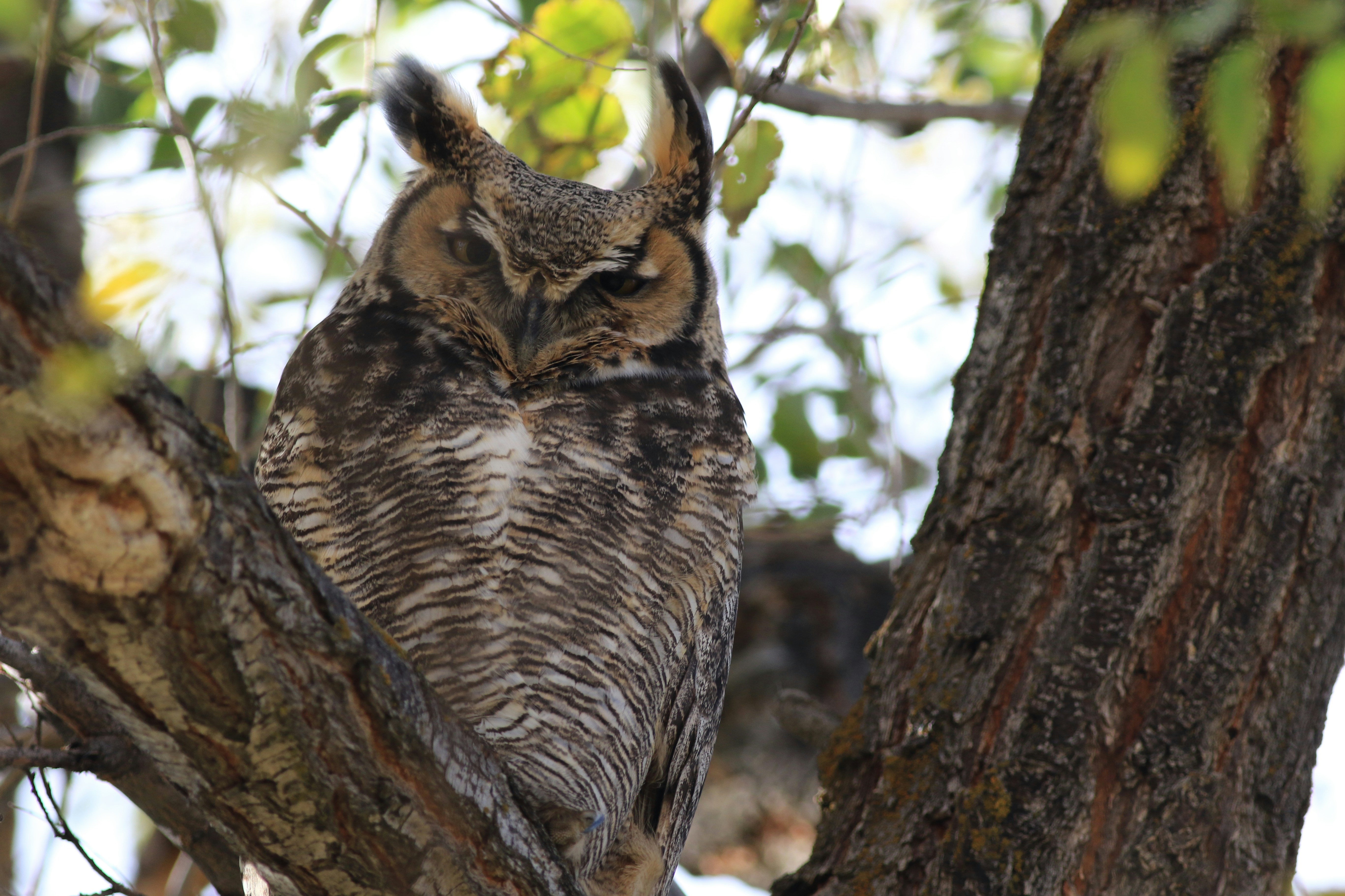 There are a pair of owls that hang out near the Visitor Center, this one was trying to stay out of the wind.